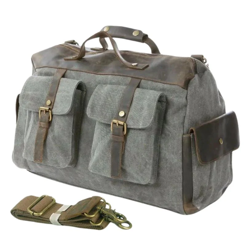 Sac de voyage vintage : l’héritage des aventuriers modernes. Revêtant une toile de coton haute densité aux allures de canvas ciré, ce sac est imprégné d’une essence rétro. Les détails en cuir brun, patinés et robustes, évoquent les accessoires des anciens globe-trotters, alliant charme d’antan et résistance moderne. Avec ses boucles métalliques vieillies et ses […]