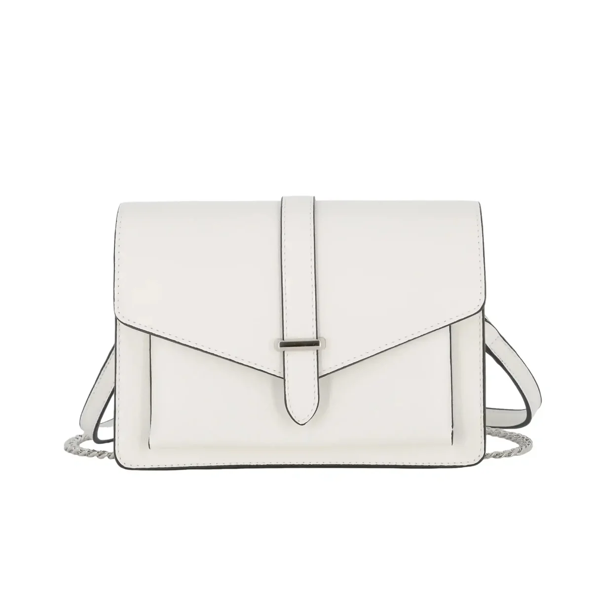 Ce sac à main en cuir synthétique affiche un design épuré et élégant. Sa fermeture à rabat magnétique, ornée d’une boucle raffinée, ajoute une touche sophistiquée. Compact et pratique, il est doté d’une bandoulière fine et d’une chaîne, idéale pour un porté épaule ou croisé. Parfait pour les occasions formelles ou décontractées, il combine style et praticité.