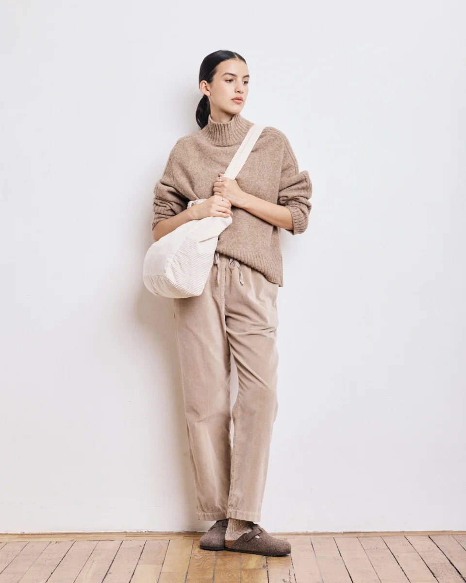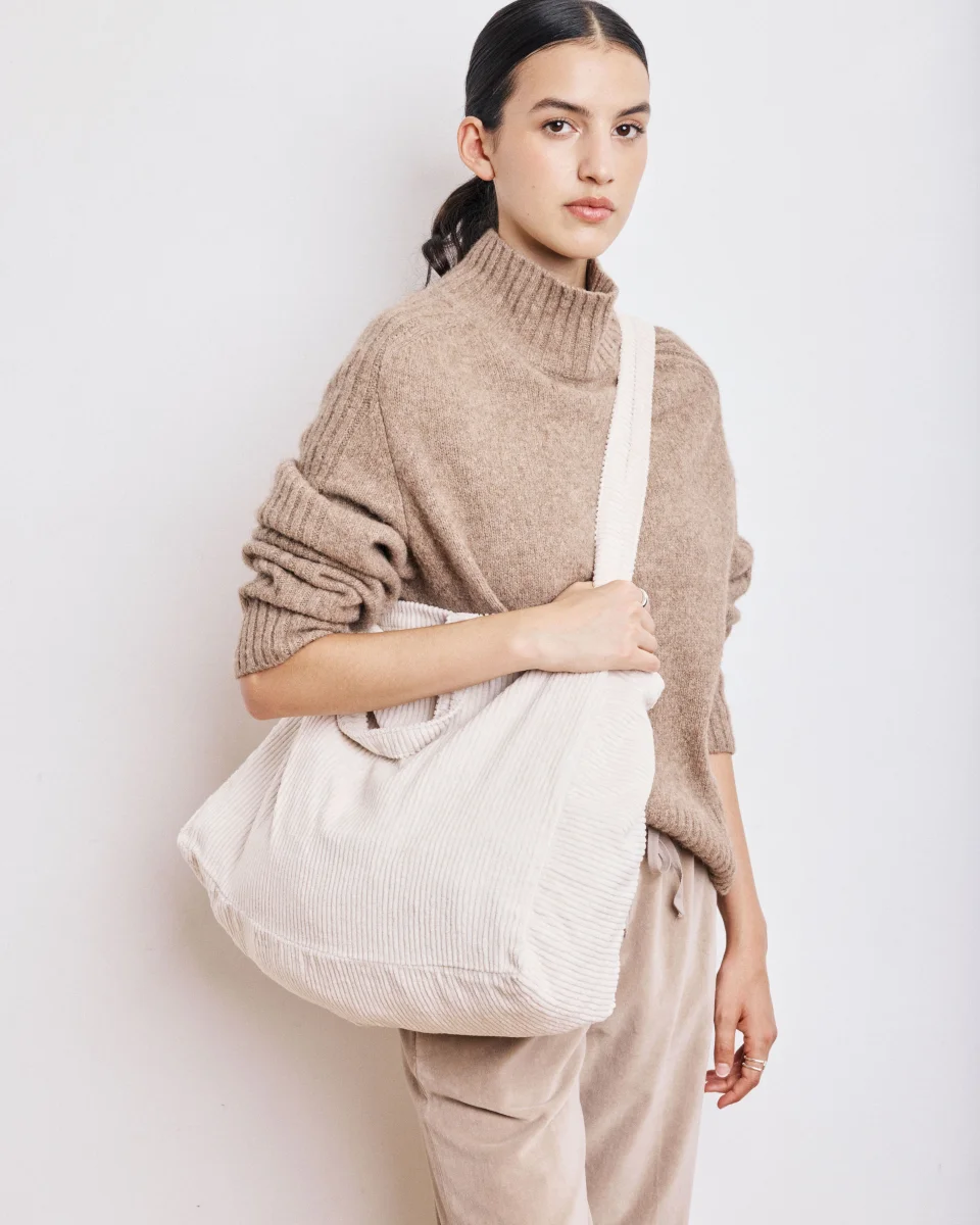 Sac Femme en Velours Côtelé Craie Large Bag