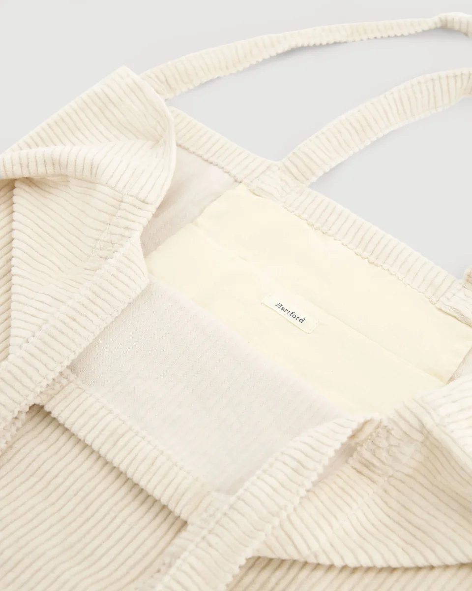 Sac cabas en velours côtelé à double anse de tailles différentes, petite poche intérieur.