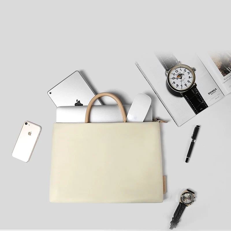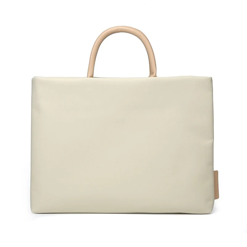 - Le sac d’ordinateur est en nylon de qualité, de couleur beige