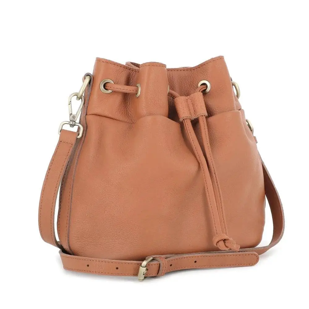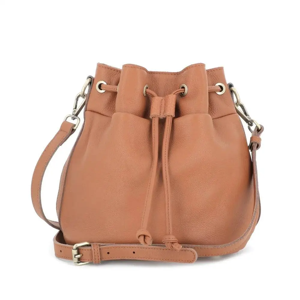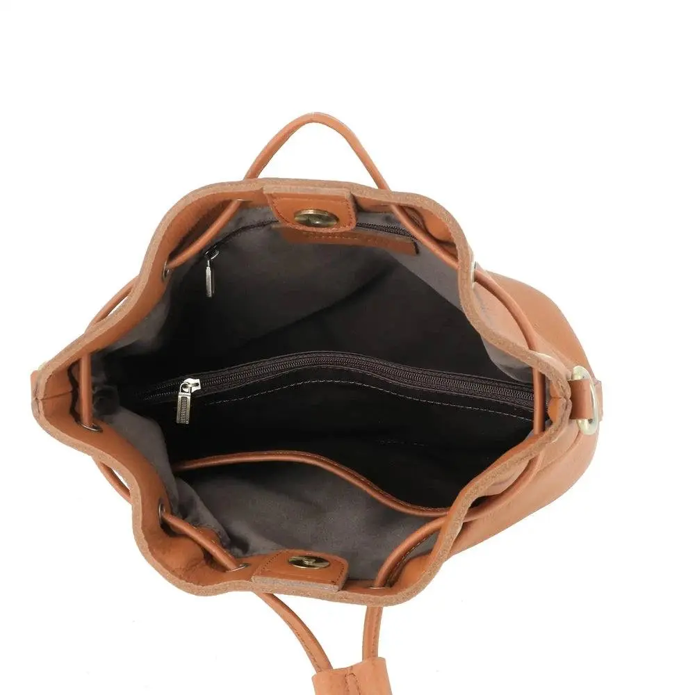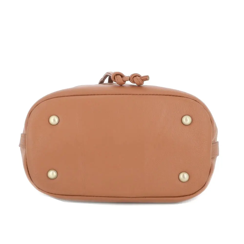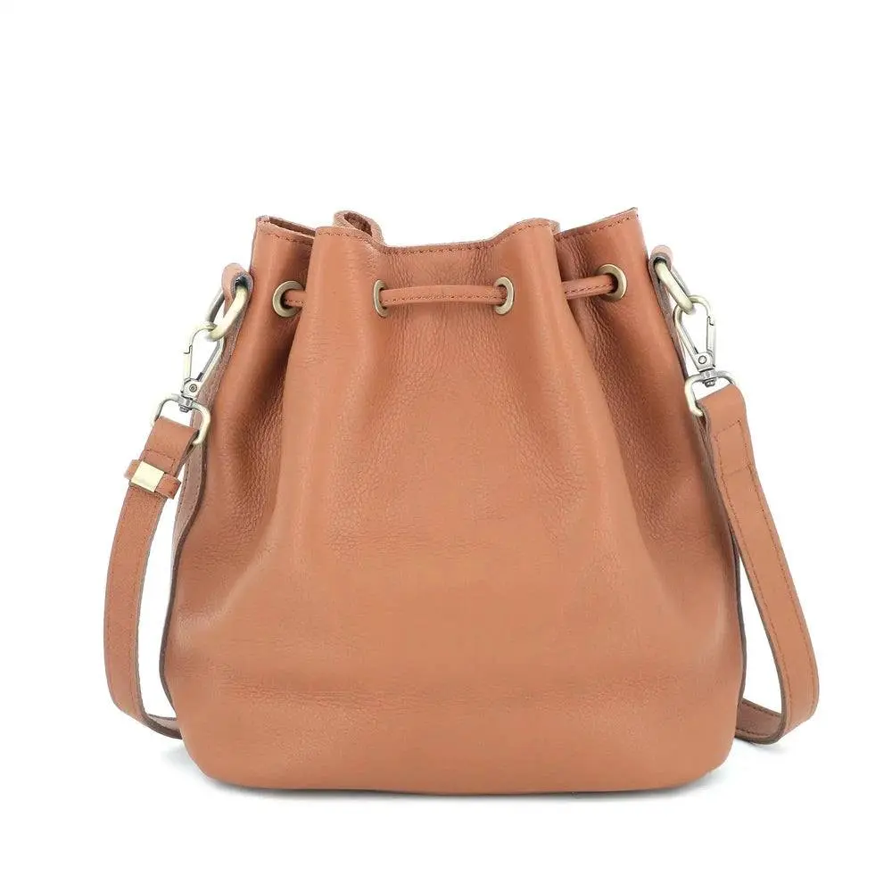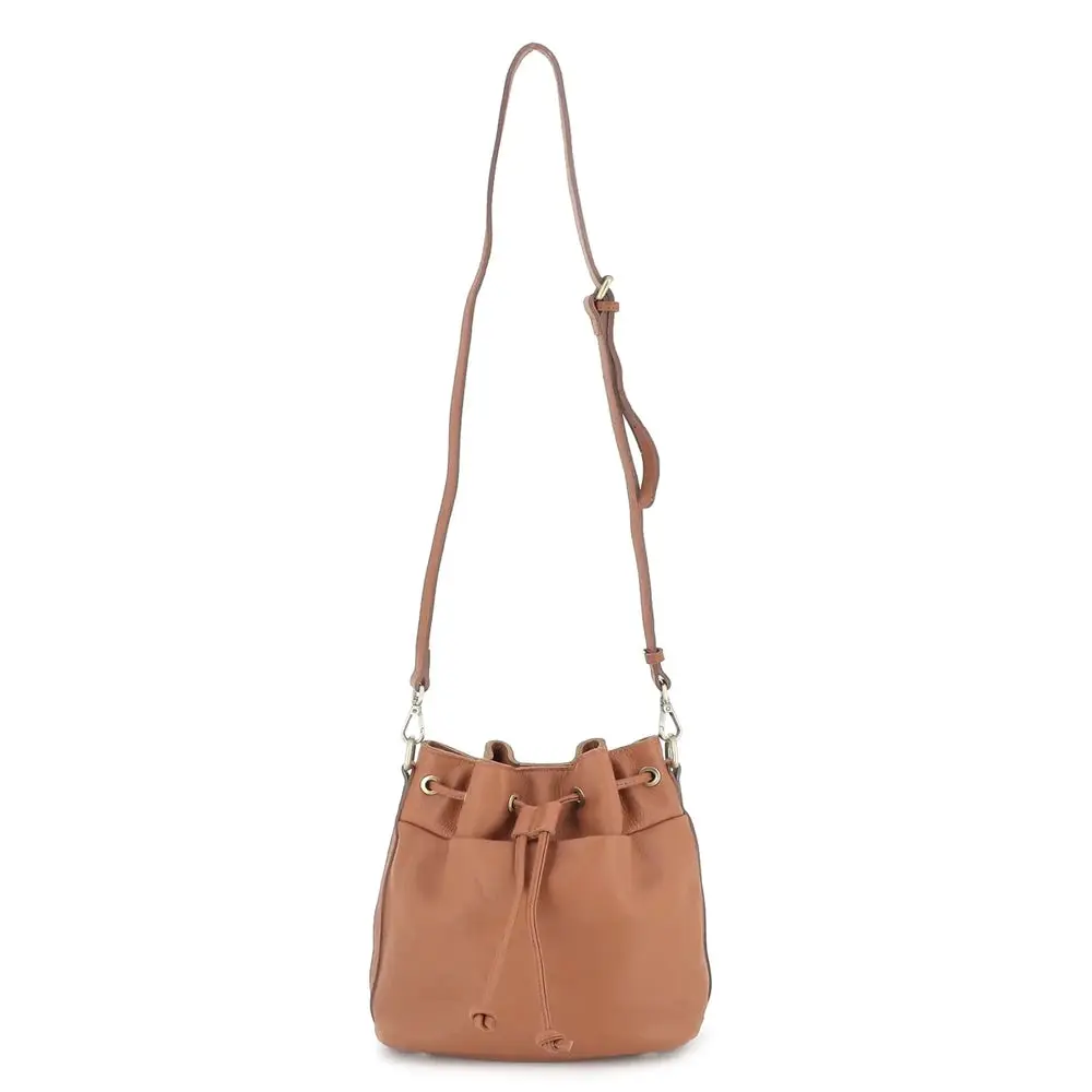 Sac seau à bandoulière femme cuir camel