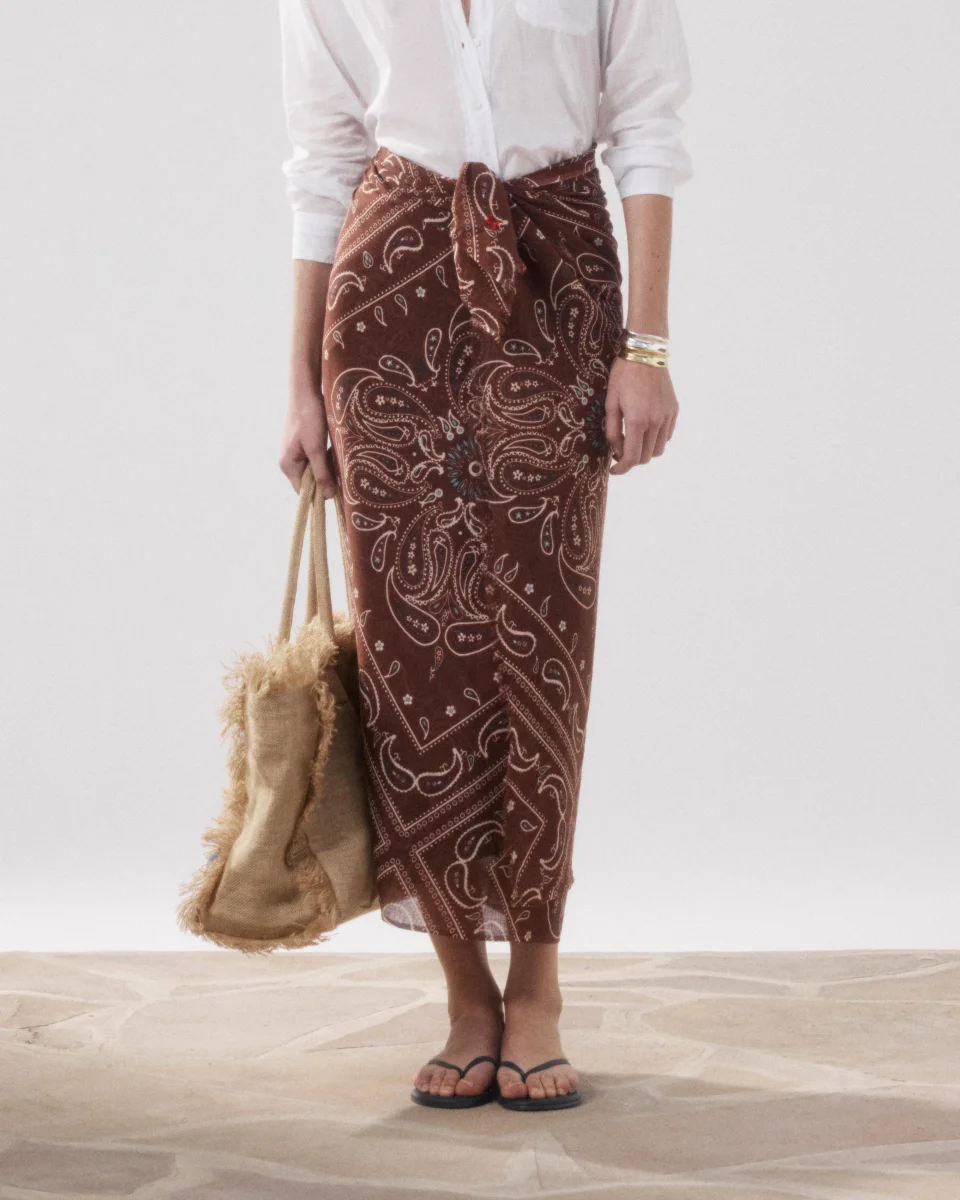 Paréo femme « sarong » en voile de coton imprimé bandana. Dimensions 100x200cm