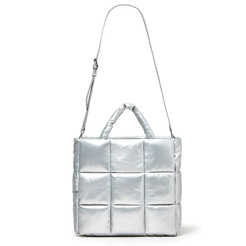 Avec sa forme carré et son aspect doudoune, ce sac cabas matelassé femme est véritablement tendance. On apprécie le fait qu’il se ferme complètement pour masquer son contenu. Vous pouvez aussi choisir de le porter à l’épaule grâce à sa bandoulière amovible. Ce sac matelassé pourra vous accompagner en ville ou pour une séance de sport.
