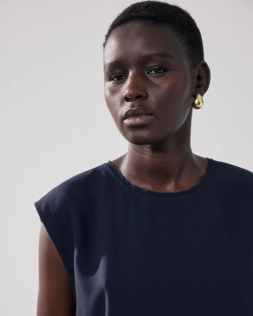 Top Femme en Crepe Bleu Nuit Howi