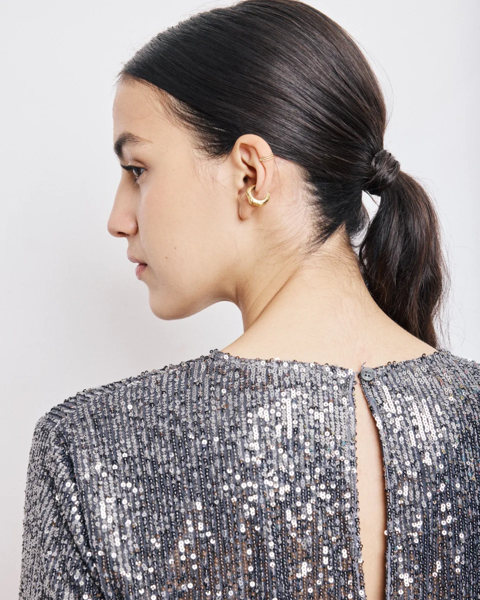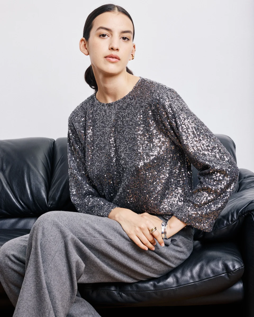 Top Femme en Sequins Gris Anthracite Harper