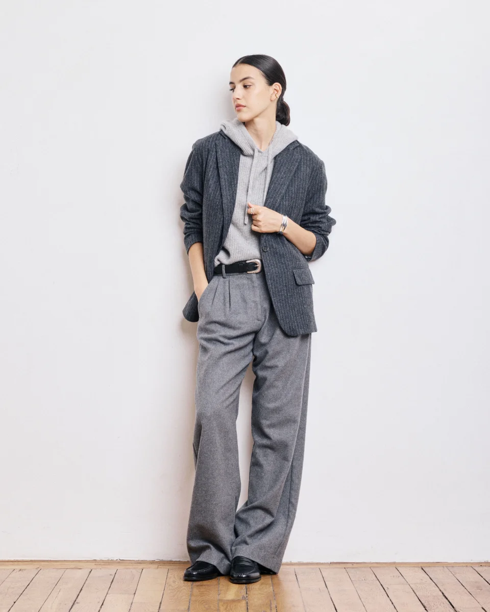 Veste Femme en Flanelle de Laine à Rayures Gris Anthracite Victo