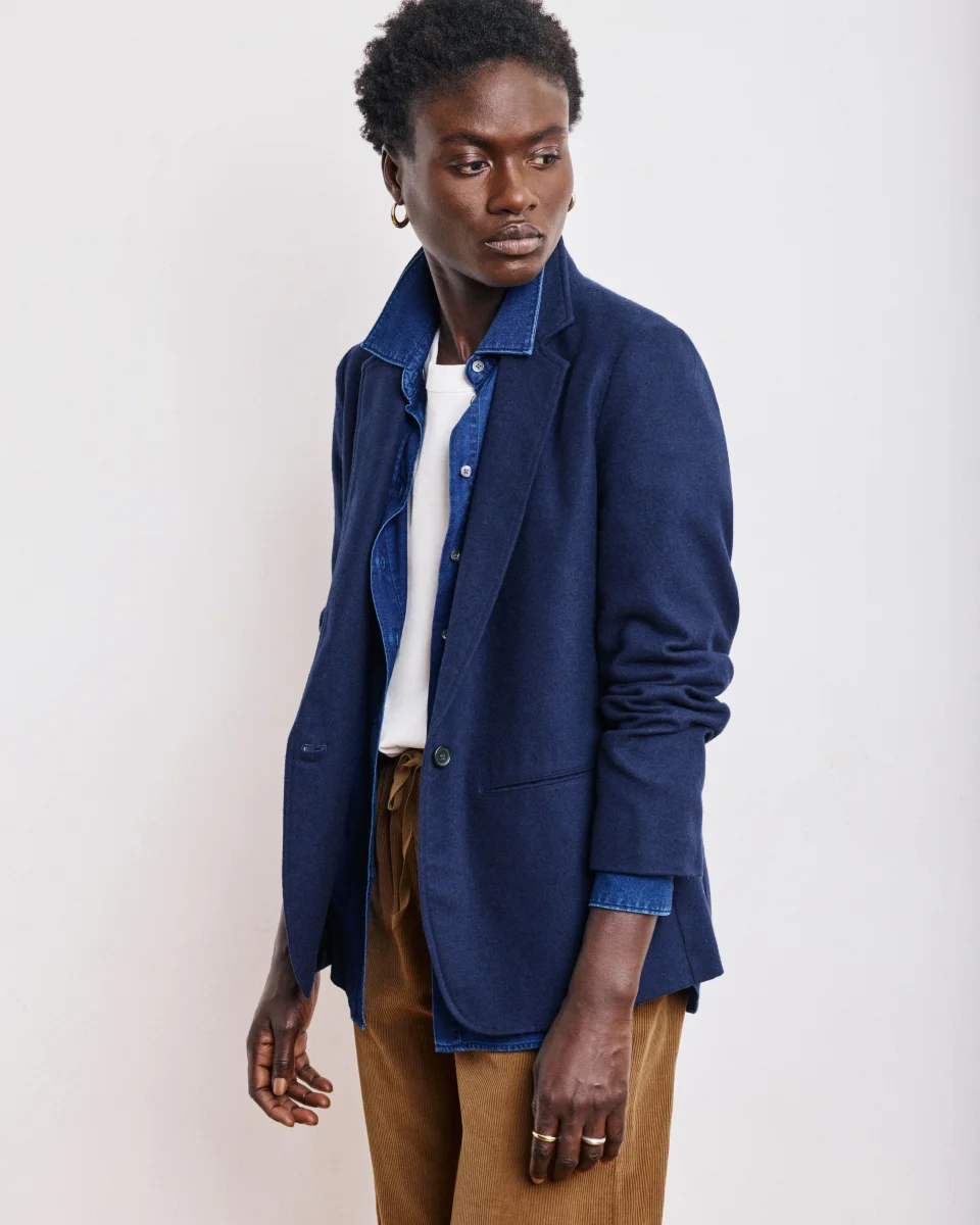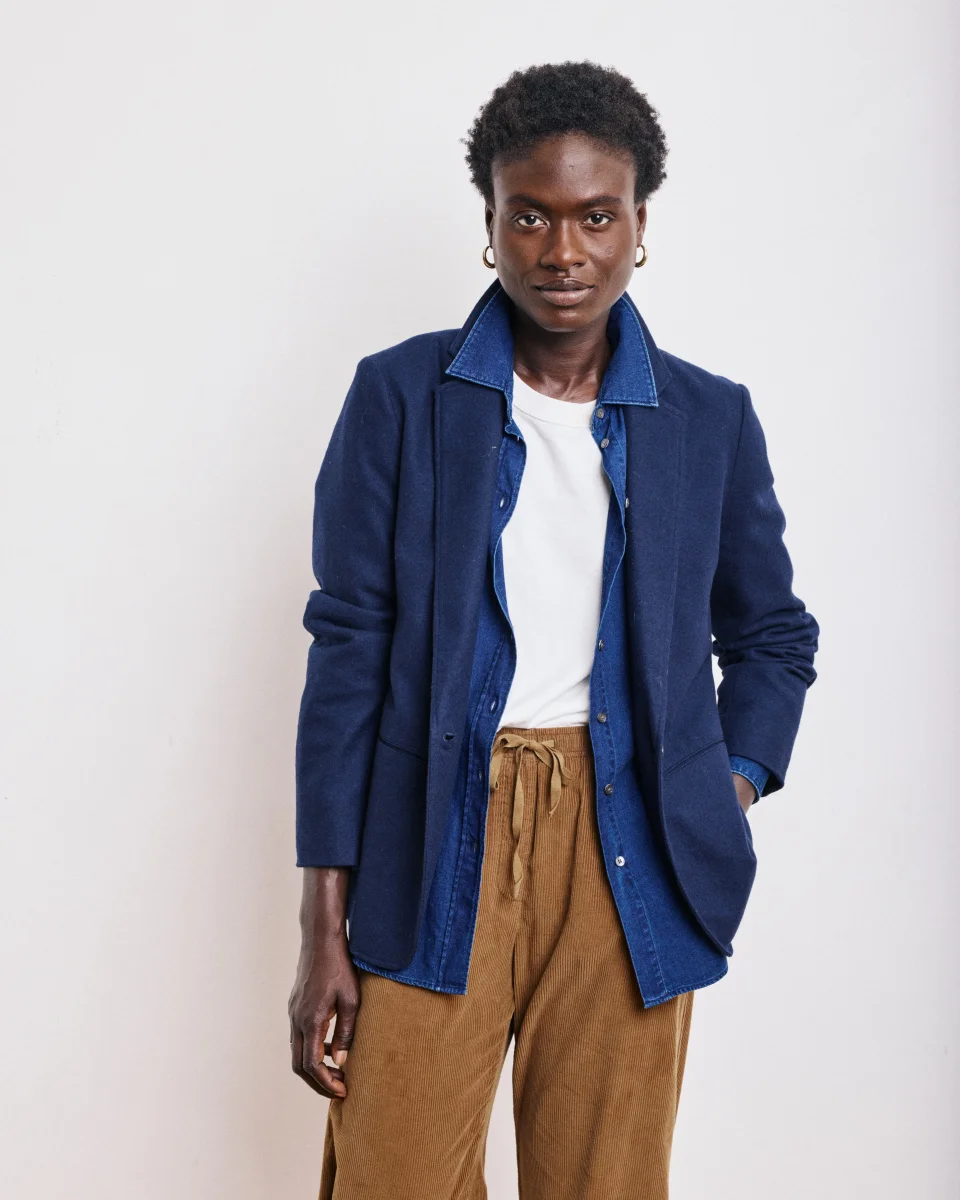 Veste Femme en Flanelle de Laine Bleu Marine Virna